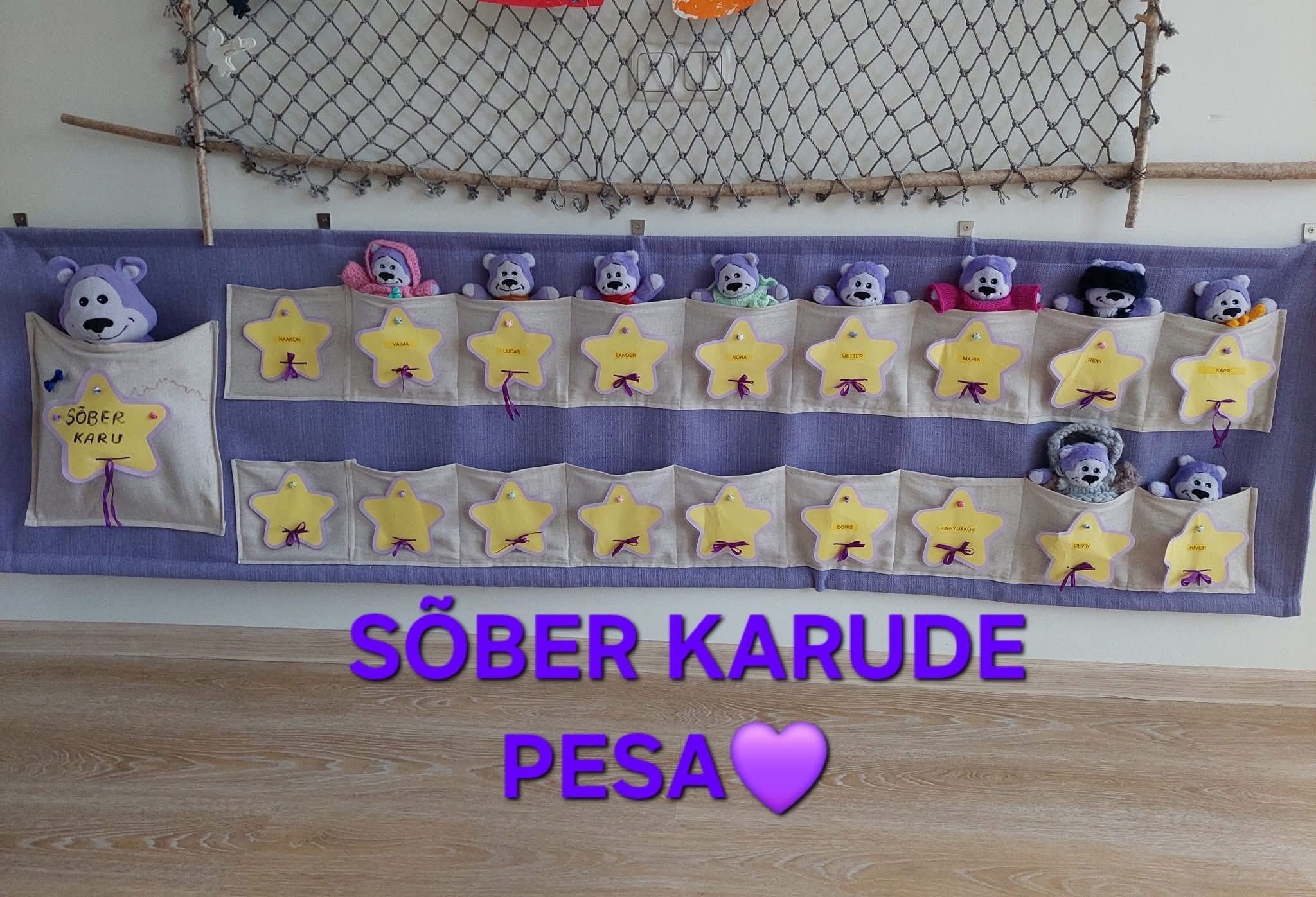 Suur Sõber Karu on rühma ühine sõber ja turvaline kaaslane, kes aitab lastel mõista enda ja teiste tundeid ning vajadusi. Lisaks on igal lapsel ka enda väike Sõber Karu, kelle kaudu õpime märkama, hoolima, sõbralikult suhtlema ja üksteist kaitsma.