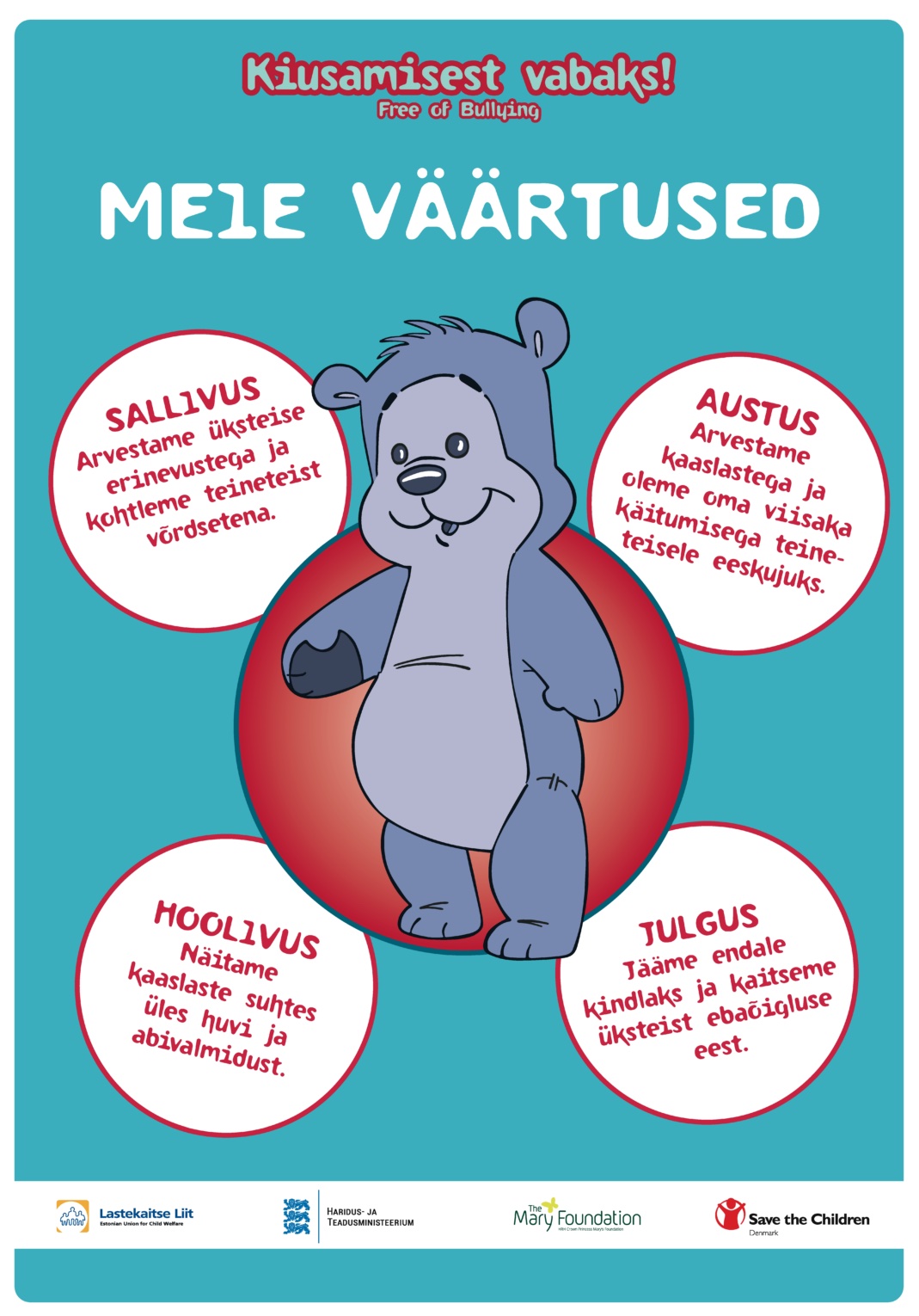 Turvaline, meeldiv ning kiusamisvaba kasvu- ja õpikeskkond ei teki iseenesest. See on kõigi ühine ülesanne ning vastutus. Toetame üheskoos seda, et iga laps saaks tunda ennast hoitud ning väärtustatuna.