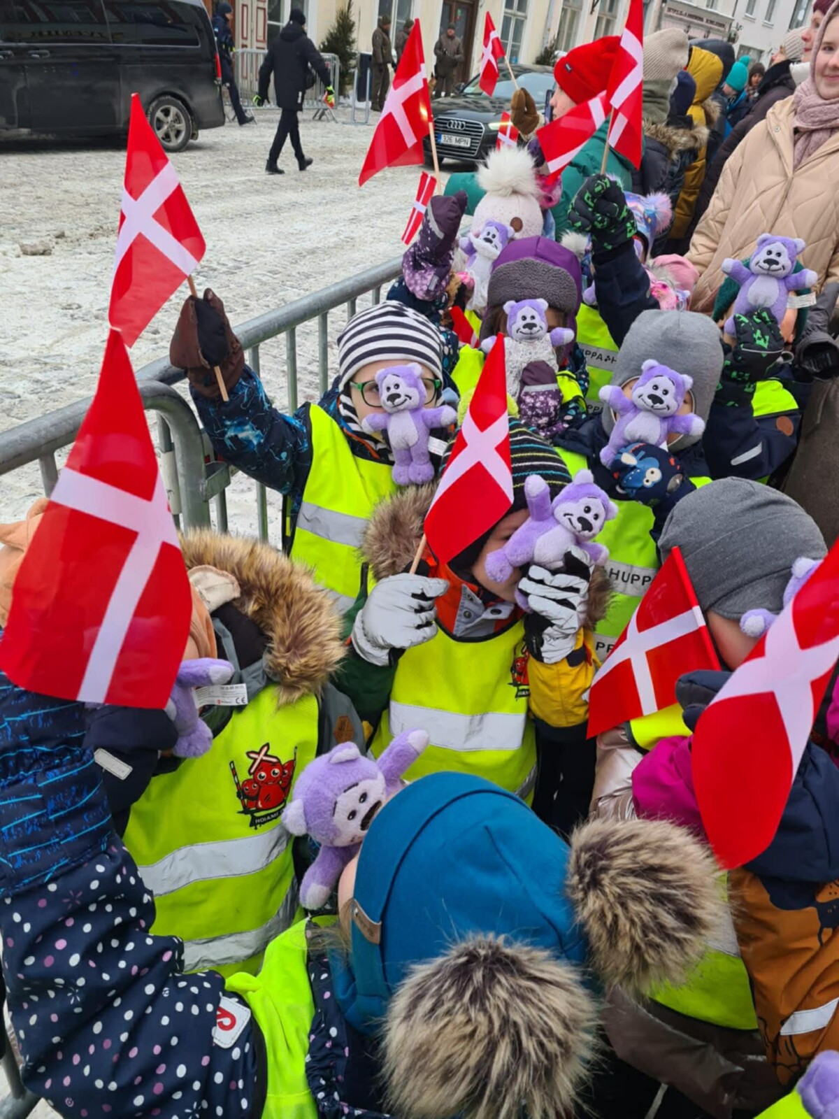 27. jaanuari hommikul tervitasid president Alar Karis ja Sirje Karis Taani kuningapaari pidulikul tseremoonial Tallinna Raekoja platsil. Kuna Taani saatkonna kaudu oli teada, et kuningapaar liigub ka vabas õhus, otsustas Lastekaitse Liit seda võimalust kasutada ning kutsus „Kiusamisest vabaks!“ programmi kasutavaid lasteaedu ja koole kuningapaarile lehvitama.